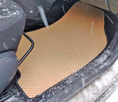 Автоковрики ЕВА не впитывают, а удерживают грязь в ячейках. Вода не катается по полу, как в резиновых половичках, однако, её все равно видно. ЕВА удобны тем, что их легко достать не пролив и вытряхнуть. Они дешевле.